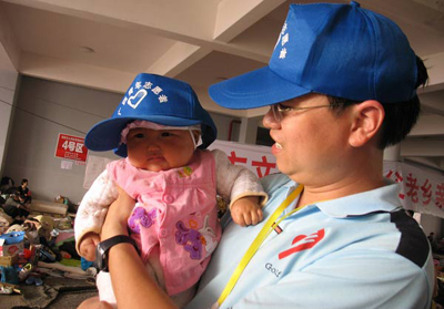 青年志愿者照顧災(zāi)區(qū)幼兒