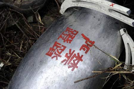 6月10日10時(shí)55分,成都軍區(qū)陸航失事的米171運(yùn)輸直升機(jī)的殘骸在映秀鎮(zhèn)附近的深山峽谷密林中找到,機(jī)上人員全部遇難。該機(jī)5月31日下午執(zhí)行運(yùn)送地震中受傷群眾的任務(wù),突遇低云大霧和強(qiáng)氣流撞山失事。新華社記者 李紫恒 攝