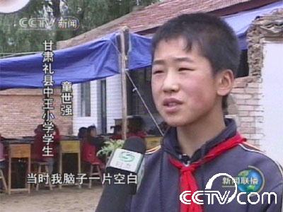 中國(guó)日?qǐng)?bào)網(wǎng)環(huán)球在線消息:童世強(qiáng)今年14歲,是甘肅省禮縣祁山鄉(xiāng)中王小學(xué)六年級(jí)的學(xué)生,也是學(xué)校少先隊(duì)的中隊(duì)長(zhǎng)。在這場(chǎng)地震中,雖然他所在的學(xué)校北面圍墻整體倒塌,但卻沒(méi)有發(fā)生一例傷亡。校長(zhǎng)獨(dú)銳鋒說(shuō):“這是童世強(qiáng)的功勞?!?/p>