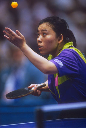 鄧亞萍乒乓球運動生涯的最大障礙不是她的對手,而是她的身高:9歲的時候,她獲得了全省少年比賽的冠軍,但她被省隊拒絕,因為她太矮了;1988年,13歲的她獲得了全國比賽的冠軍,但仍被國家隊拒絕,因為她太矮了。直到1989年,國家隊的教練才給她機會,這時,鄧亞萍已經16歲了,但這一年,她和喬紅搭檔,并獲得世界錦標賽乒乓球女雙的冠軍。1991年,身高只有1.49米的鄧亞萍擊敗朝鮮對手獲得世界錦標賽的女子單打冠軍。1992年西班牙巴塞羅納夏季奧運會上,鄧亞萍和喬紅搭檔獲得雙打比賽的金牌。兩天后,她們就作為對手在單打半決賽中相遇,最終鄧亞萍贏得了個人的第二枚奧運會金牌。1996年美國亞特蘭大夏季奧運會,鄧亞萍和喬紅再次搭檔,成功衛(wèi)冕女子雙打冠軍。兩天后,鄧亞萍再次在女子單打決賽中折桂,獲得個人的第四枚奧運會金牌