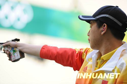 8月9日,中國(guó)選手龐偉在男子10米氣手槍決賽中。