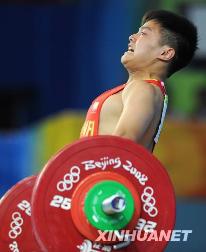 8月10日,中國(guó)選手龍清泉在北京奧運(yùn)會(huì)男子舉重56公斤級(jí)決賽中,獲得冠軍。新華社記者楊磊攝