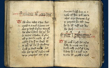 這本書是用數(shù)碼成像技術(shù)拍成照片并放到網(wǎng)上的40部珍貴手稿之一。其他中古英語手稿還包括英國詩人喬叟《坎特伯雷故事集》的現(xiàn)存最早完整版本之一,約翰?利德蓋特的兩部主要詩集《特洛伊》和《王子們的沉淪》,以及500年前圣經(jīng)被譯成英文的版本。(王菁)