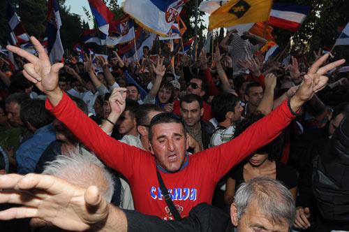 中國日?qǐng)?bào)網(wǎng)環(huán)球在線消息:據(jù)美國媒體10月14日?qǐng)?bào)道,黑山共和國于13日爆發(fā)示威游行活動(dòng),約有1萬名黑山“挺塞”派走上街頭,抗議該國政府承認(rèn)科索沃獨(dú)立的行為。