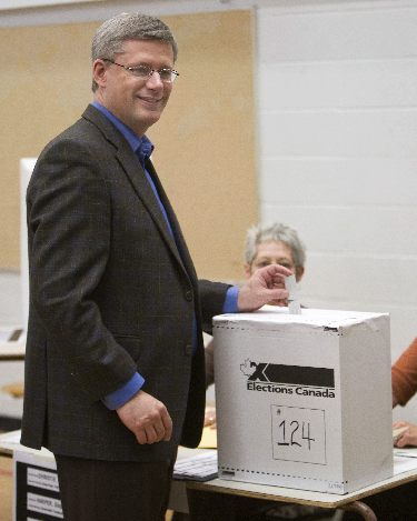 圖為:加拿大現(xiàn)任總理哈珀在投票中