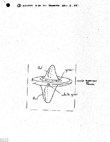 中國(guó)日?qǐng)?bào)網(wǎng)環(huán)球在線消息:據(jù)英國(guó)《每日郵報(bào)》10月20日?qǐng)?bào)道,英國(guó)國(guó)家檔案館當(dāng)天對(duì)外公布了一份英國(guó)軍方報(bào)告,詳述了發(fā)生在1991年的一起多人目擊不明飛行物( UFO)的事件,并展示了當(dāng)年目擊者畫(huà)下的UFO草圖。