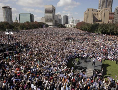 奧巴馬在圣路易斯的集會(huì)吸引了10萬(wàn)