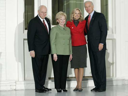 拜登夫婦(右一、右二)與切尼夫婦在副總統(tǒng)官邸合影