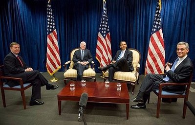 從左到右依次是:格雷厄姆、麥凱恩、奧巴馬和伊曼紐爾