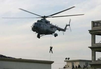 新華社記者在現(xiàn)場(chǎng)看到,印度海軍陸戰(zhàn)隊(duì)隊(duì)員從在納里曼大樓上空盤(pán)旋多時(shí)的武裝直升機(jī)上空降到大樓樓頂。目前,印度軍警和武裝分子仍然在納里曼大樓內(nèi)進(jìn)行激戰(zhàn),槍聲十分密集。早些時(shí)候,這里曾連續(xù)發(fā)生多起爆炸事件。
