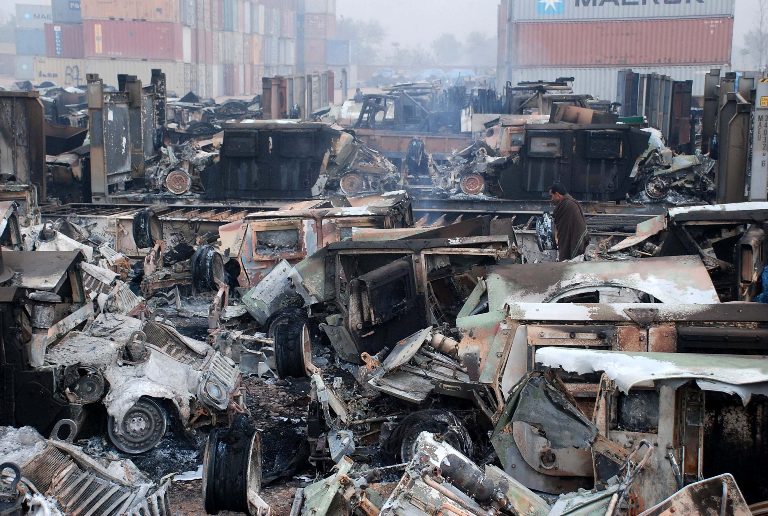 塔利班燒毀巴境內(nèi)160余輛美軍車