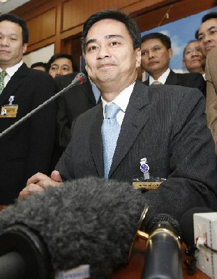 中國(guó)日?qǐng)?bào)網(wǎng)環(huán)球在線(xiàn)消息:12月15日,泰國(guó)民主黨黨魁阿披實(shí)在國(guó)會(huì)下議院總理選舉特別會(huì)議上贏得多數(shù)選票,戰(zhàn)勝人民黨總理候選人,當(dāng)選泰國(guó)第27任總理。這意味民主黨在失去執(zhí)政地位8年后終于重掌國(guó)家大權(quán),并打破近年來(lái)由前總理他信及其盟友執(zhí)政的局面。在選舉結(jié)果出爐后,早就圍堵在國(guó)會(huì)大廈外的前總理他信的支持者群情激憤,高聲抗議。
