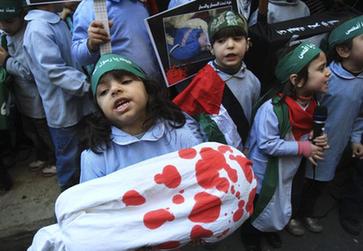 在國際紅十字委員會(huì)門前示威的巴勒斯坦兒童