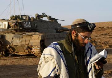 在軍車旁禱告的以軍士兵