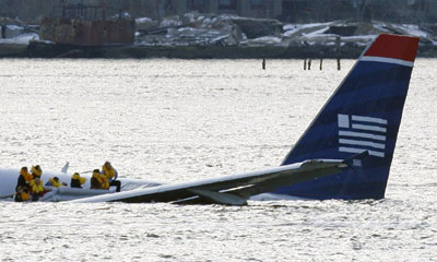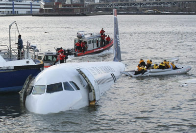 | 空中客車A320客機迫降在紐約哈德孫河面上。 |