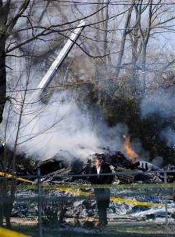失事飛機(jī)墜落后撞毀了布法羅近郊克萊倫斯鎮(zhèn)一幢兩層的木制民房并發(fā)生爆炸。當(dāng)時(shí)在屋子中住著一家三口,現(xiàn)年57歲的女主人凱倫和22歲的女兒吉爾僥幸逃生,但男主人唐不幸遇難。