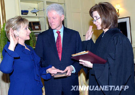 這張美國國務(wù)院提供的照片顯示,1月21日,希拉里·克林頓(左一)在美國首都華盛頓宣誓就任美國國務(wù)卿。美國參議院當(dāng)天以94票對2票的絕對優(yōu)勢,批準(zhǔn)奧巴馬總統(tǒng)關(guān)于希拉里擔(dān)任國務(wù)卿的提名。新華社/法新