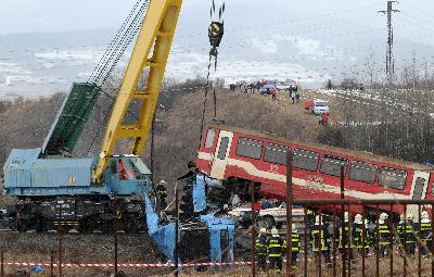 據(jù)悉,事故發(fā)生于當(dāng)?shù)貢r(shí)間上午9時(shí)左右,地點(diǎn)在布雷茲諾縣附近的一處火車十字路口。一輛有兩節(jié)車廂的火車突然脫軌,并與一輛汽車相撞。事發(fā)后,斯洛伐克衛(wèi)生部長和交通部長很快趕到現(xiàn)場(chǎng),并出動(dòng)3架直升機(jī)和9輛救護(hù)車搶救傷員。