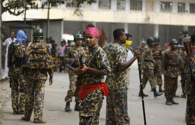 25日上午,位于孟加拉國(guó)首都達(dá)卡的“孟加拉步槍隊(duì)”成員突然發(fā)起暴動(dòng),要求加薪和改善福利。隨后,趕赴現(xiàn)場(chǎng)的武裝部隊(duì)與步槍隊(duì)士兵發(fā)生激烈交火?!懊霞永瓏?guó)步槍隊(duì)”受孟軍方指揮,主要負(fù)責(zé)邊防巡邏,有成員6.7萬(wàn)名。他們經(jīng)常輔助軍隊(duì)和警方執(zhí)行國(guó)土防御和維持治安等任務(wù)。