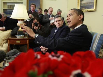 英國(guó)首相布朗與美國(guó)總統(tǒng)奧巴馬3月3日在白宮會(huì)面