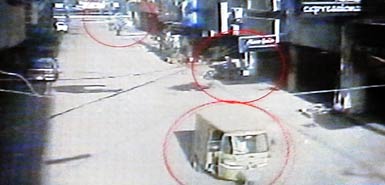 一些武裝分子在巴基斯坦拉合爾襲擊斯里蘭卡板球隊(duì)后乘坐三輪車逃離現(xiàn)場(chǎng)。