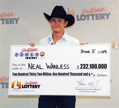 5月底,溫雷斯出去購買牲口飼料路過一個名叫“贏家”(英語名稱為Winner)的小鎮(zhèn),順便在一家便利店買了15美元的“威力球”(Powerball)彩票,沒想到一舉奪得2.32億美元頭等大獎。