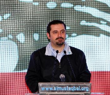 黎議會(huì)多數(shù)派領(lǐng)導(dǎo)人、“未來陣線”領(lǐng)袖薩阿德·哈里里在新聞發(fā)布會(huì)上發(fā)言宣布獲勝