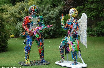 目前羅伯特制作出來的最大的兩個(gè)模型分別是“玩具士兵”和“玩具天使”,每一件都花費(fèi)了2個(gè)多月時(shí)間,用了數(shù)千塊舊玩具和其它各種材料。他介紹說:“‘玩具士兵’的靈感來自伊拉克戰(zhàn)爭。你可以看到,他身上裝備非常齊全——腳下踩著航空母艦、身上背著手槍和彈夾還有無線對講機(jī)。當(dāng)然。手中還一定會(huì)拿著一挺卡拉什尼科夫沖鋒槍?!?/p>