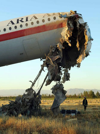 伊朗客機在發(fā)生事故后嚴(yán)重受損。