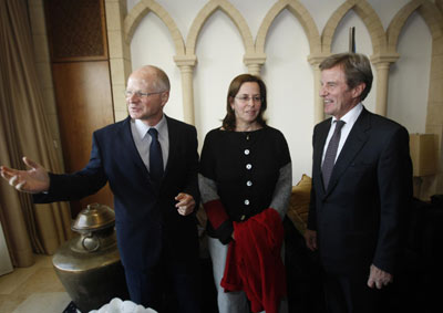 18日,到訪以色列的法國外長庫什內(nèi)在耶路撒冷會(huì)見了沙利特的父母。沙利特?fù)碛幸陨泻头▏p重國籍,法國總統(tǒng)薩科齊也通過庫什內(nèi)表達(dá)了對(duì)沙利特一家的慰問。(環(huán)球在線:柳洪杰)