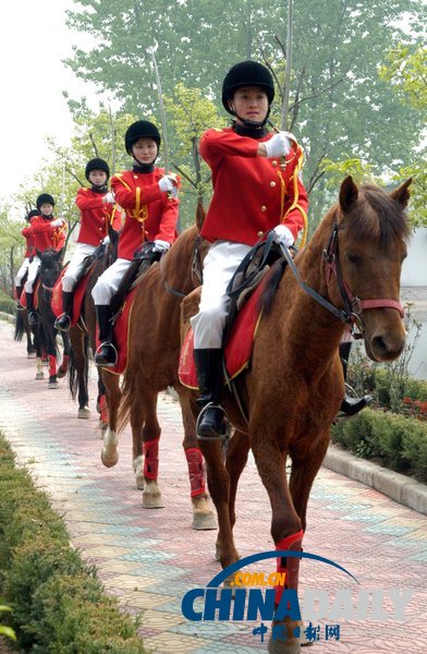 2005年9月25日,我國縣級城市中首支女騎警巡邏隊(duì)正式在江蘇省盱眙縣街道上開始巡邏。(資料圖片)