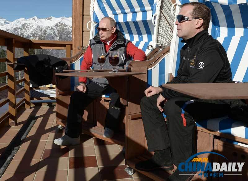 普京視察冬奧會設施 與梅德韋杰夫一起滑雪喝茶