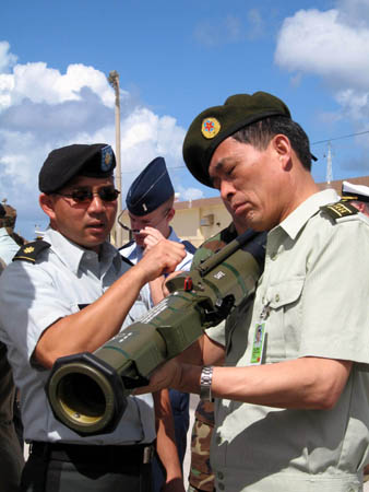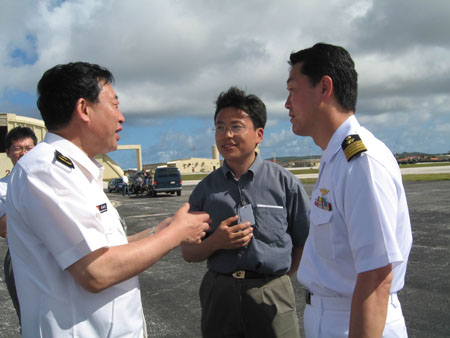 2006年6月19日,中國(guó)赴美軍事演習(xí)觀摩團(tuán)應(yīng)邀觀摩了在美國(guó)西太平洋領(lǐng)地關(guān)島附近舉行的代號(hào)為“英勇盾牌-06”的大規(guī)模軍事演習(xí),這是美軍首次邀請(qǐng)中方觀摩美軍單獨(dú)舉行的軍事演習(xí)。(來(lái)源:新華社)