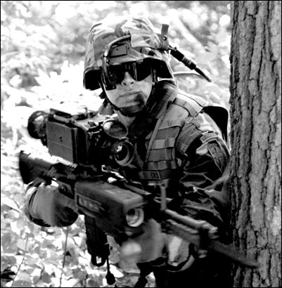 美國國防部的“陸地勇士”概念最早在1991年正式提出,后幾乎取消研究計劃,但美國陸軍從1994年8月繼續(xù)“陸地勇士”計劃的研究。