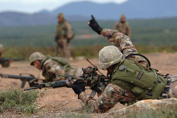 北約演習(xí)中戰(zhàn)斗小組準(zhǔn)備發(fā)起進(jìn)攻