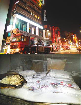 新竹市市區(qū)一旅館火警,原因是一名張姓大學(xué)生在床上點(diǎn)了百根小蠟燭。圖片來源:臺(tái)灣《聯(lián)合報(bào)》