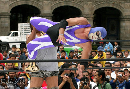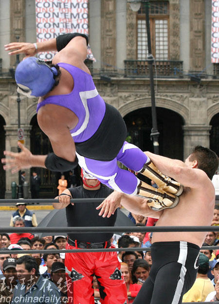 環(huán)球在線消息:因7月初的選舉而導(dǎo)致的墨西哥政局混亂仍在持續(xù)。7月25日,摔跤選手在首都墨西哥城的廣場上舉行摔跤比賽,抗議選舉結(jié)果,支持左翼候選人洛佩斯·奧夫拉多爾。