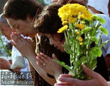 人們?yōu)樗离y者祈禱,企盼和平。[路透社照片]