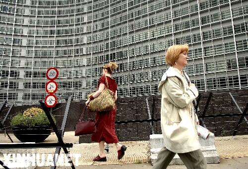 6月21日,在比利時(shí)首都布魯塞爾,行人從歐盟總部前的路障旁走過。當(dāng)晚,歐盟首腦會(huì)議將在這里開幕,商討歐盟憲法新條約等問題。