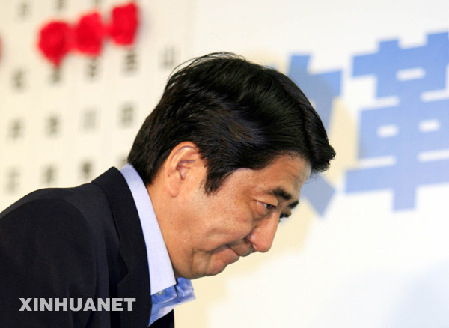 資料圖片:7月29日,在日本東京,日本首相安倍晉三表情凝重。當日,日本自民黨在參議院選舉中失利,在野黨贏得參議院超過半數(shù)的議席,但日本首相安倍晉三表示將繼續(xù)留任。新華社記者任正來攝