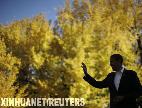 10月26日,在美國(guó)科羅拉多州柯林斯堡舉行的競(jìng)選活動(dòng)中,美國(guó)民主黨總統(tǒng)候選人奧巴馬向支持者揮手致意。美國(guó)全國(guó)廣播公司最新民調(diào)結(jié)果顯示,奧巴馬支持率為51%,麥凱恩為40%。但路透社、政府新聞衛(wèi)星有線電視臺(tái)和佐格比國(guó)際民意調(diào)查所26日公布的數(shù)據(jù)表明,奧巴馬支持率為49%,領(lǐng)先麥凱恩5個(gè)百分點(diǎn),兩人間的支持率差距連續(xù)3天縮小。新華社/路透