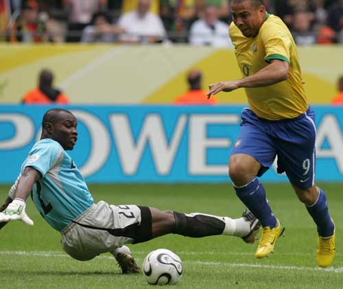 環(huán)球在線消息:在對(duì)加納比賽結(jié)束后,羅納爾多興奮地表示:“我很高興成為世界杯進(jìn)球最多的人,這是實(shí)現(xiàn)了我的夢(mèng)想,更主要的是我們的球隊(duì)已經(jīng)完全戰(zhàn)勝了自己!