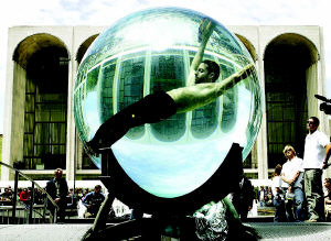 環(huán)球在線消息:美國魔術(shù)師大衛(wèi)-布萊恩在紐約林肯中心進行的“活人水族館”表演挑戰(zhàn)失敗。