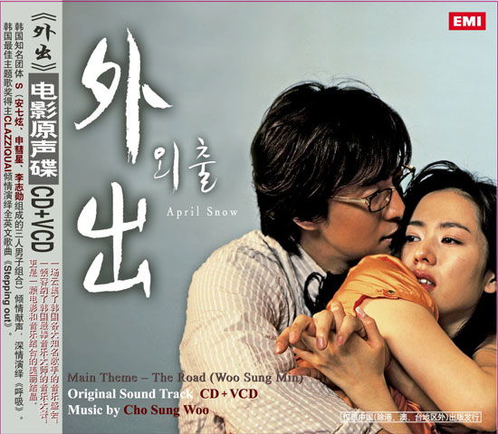而此部電影的主題曲《呼吸》則是由在中日韓三國都有著超高人氣的S組合(Kangta、申彗星、李志勛三人組成的組合)演唱,他們?nèi)藘?yōu)美的歌聲把影片中的悲挽情節(jié)詮釋得淋漓盡致。此外,另一主題曲《The Road》則是由韓國知名音樂制作人宇成珉演唱的。另外,由于演唱了韓劇《我的名字叫做金三順》的OST而成名的歌手Clazziquai也參與進了此部電影原聲大碟的制作,她演唱的《Steppping Out》也是此張原聲大碟的一大亮點。另外,韓國實力派女歌手Loveholic也演唱了2首作品。因此可以說此張原聲大碟網(wǎng)絡了韓國一線歌手的經(jīng)典作品。由于此部影片是以講述悲挽的愛情故事為主,所以電影的原聲大碟也是以抒情歌曲為主,可以讓聽眾在音樂中感受一下與影片中有所不同的愛情故事。