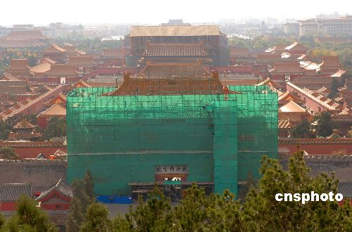 環(huán)球在線消息:十一月十四日,北京故宮太和殿與北門樓建筑同時在大修進程之中。已有560多年歷史的北京故宮,建于明永樂四年至十八年(1406-1420年),自1911年辛亥革命以來近百年間,故宮建筑從未進行過如此大規(guī)模的維修。故宮大修預計到2020年完工,投資近20億元人民幣,一期工程計劃在2008年北京奧運會前完工。