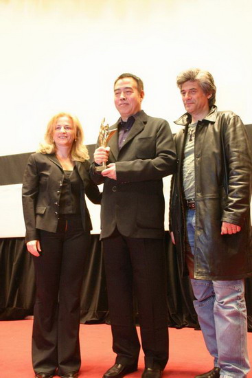 塞薩洛尼基電影節(jié)主席穆薩基女士和藝術(shù)指導(dǎo)科萊菲斯同時上臺為陳凱歌頒獎,“陳凱歌導(dǎo)演的電影不僅屬于中國,也屬于全世界人民。雖然他說他不是一個老師,但是他的電影讓我們受益匪淺,感謝他為電影所做的一切!”