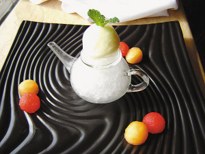 Æ÷ÃóºÜÌØ„e£¬ÊÇ‚€Ð¡Ð¡µÄ²£Á§²è‰Ø£¬‰Ø¿ÚÉÏ·ÅÖøÑ©°Ô£¬²è‰Ø¶Ç×ÓÀïÓбK¼tÉ«µÄСŸô£¬éWéW°l(f¨¡)ÁÁ¡£Ñ©°ÔÓÃÏ㙉¡¢µ°ÇåºÍÌÇ×ö³É£¬¿Ú¸Ð΢ËᣬÒò?y¨¤n)éËü²»º¬ÄÌÓÍ£¬ËùÒÔºÜßmºÏÄÇЩϲšg³ÔÑ©¸âÓÖÅÂÅÖµÄÈË¡£
