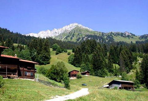 想起朱自清在他的瑞士散記里寫道:稀稀疏疏錯(cuò)錯(cuò)落落的房舍,仿佛有雞鳴犬吠的聲音,在山肚里,在山腳下。想必他也是住在格林德瓦的山坡上吧。