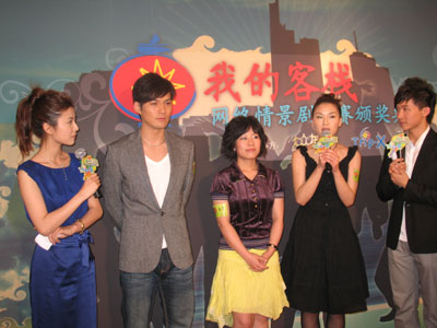 中國(guó)日?qǐng)?bào)網(wǎng)環(huán)球在線消息:由大眾在線(www.poptv.com.cn)、Trip-X網(wǎng)站和我的卡(My Card)聯(lián)合主辦的"我的客棧"網(wǎng)絡(luò)情景劇大賽,經(jīng)過(guò)近5個(gè)月緊張激烈的劇本初選、短片拍攝和網(wǎng)絡(luò)投票之后,終于于昨晚(5月11日)圓滿的落下了帷幕。除了主辦方代表和多家媒體之外,本次大賽的評(píng)委著名導(dǎo)演扈耀之、香港電影電視創(chuàng)作人盧永強(qiáng)、著名專欄作家老貓司新穎、影視演員嚴(yán)寬、張博、"超女"易慧、著名歌手黃閱也以頒獎(jiǎng)嘉賓的身份出席了本次頒獎(jiǎng)禮。