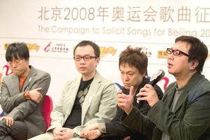 中國日報網(wǎng)環(huán)球在線消息:第四屆北京2008年奧運會歌曲征集評選辦公室昨天迎來四位重量級的選手,香港音樂人林夕、金培達、陳少琪和梁翹柏集體到京提交了他們苦心創(chuàng)作的兩首參選歌曲,分別是林夕作詞、梁翹柏作曲的《夢想在望》和陳少琪作詞、金培達作曲的《生命之光》。記者會現(xiàn)場,四位金牌音樂人暢談奧運歌曲的創(chuàng)作過程和心得,并開誠布公地相互點評對方的詞或曲。妙語連珠的“挑刺”過程引來笑聲不斷。